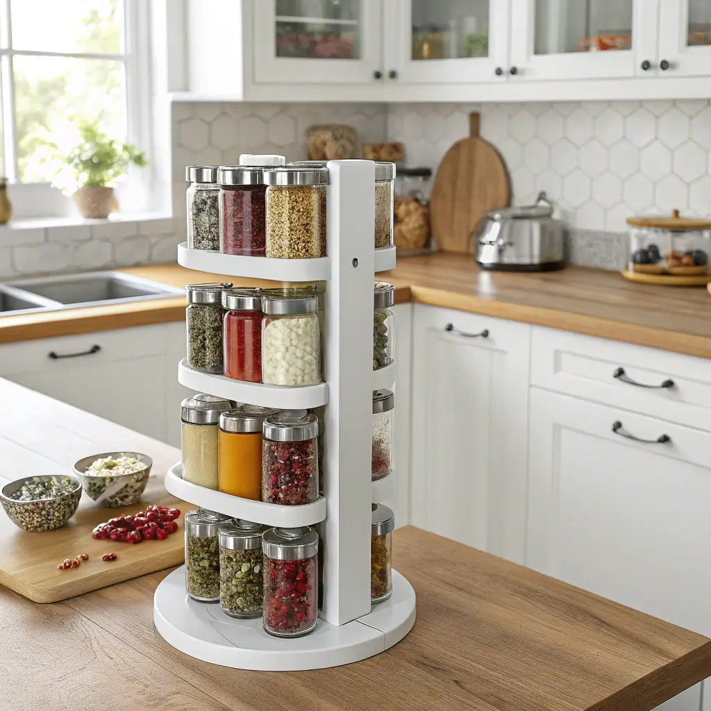 You’ve got options here—tiered stands, magnetic boards, or small shelving units all work great. The key is keeping it organized by how you cook. Group your baking spices together, keep your everyday seasonings front and center, and maybe alphabetize if you’re feeling particularly type-A (no judgment).