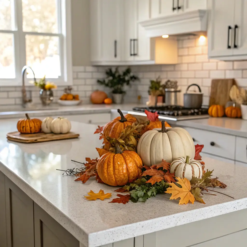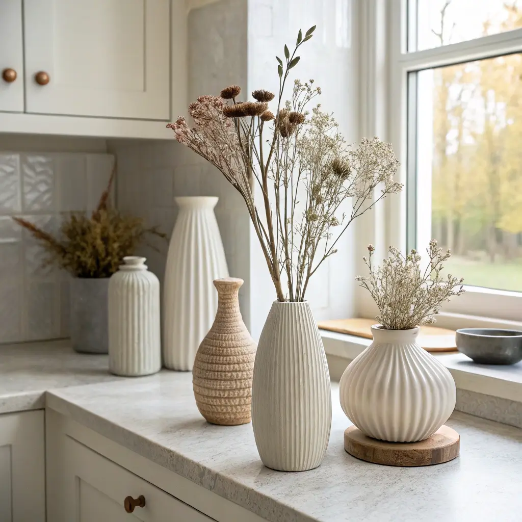 Having a corner that changes with the seasons keeps your kitchen feeling fresh year-round. I dedicate one corner to seasonal touches that I switch out every few months. Spring gets fresh flowers and pastel accents, summer brings bright fruits and coastal elements, fall means mini pumpkins and warm colors, and winter calls for evergreen sprigs and metallic touches.