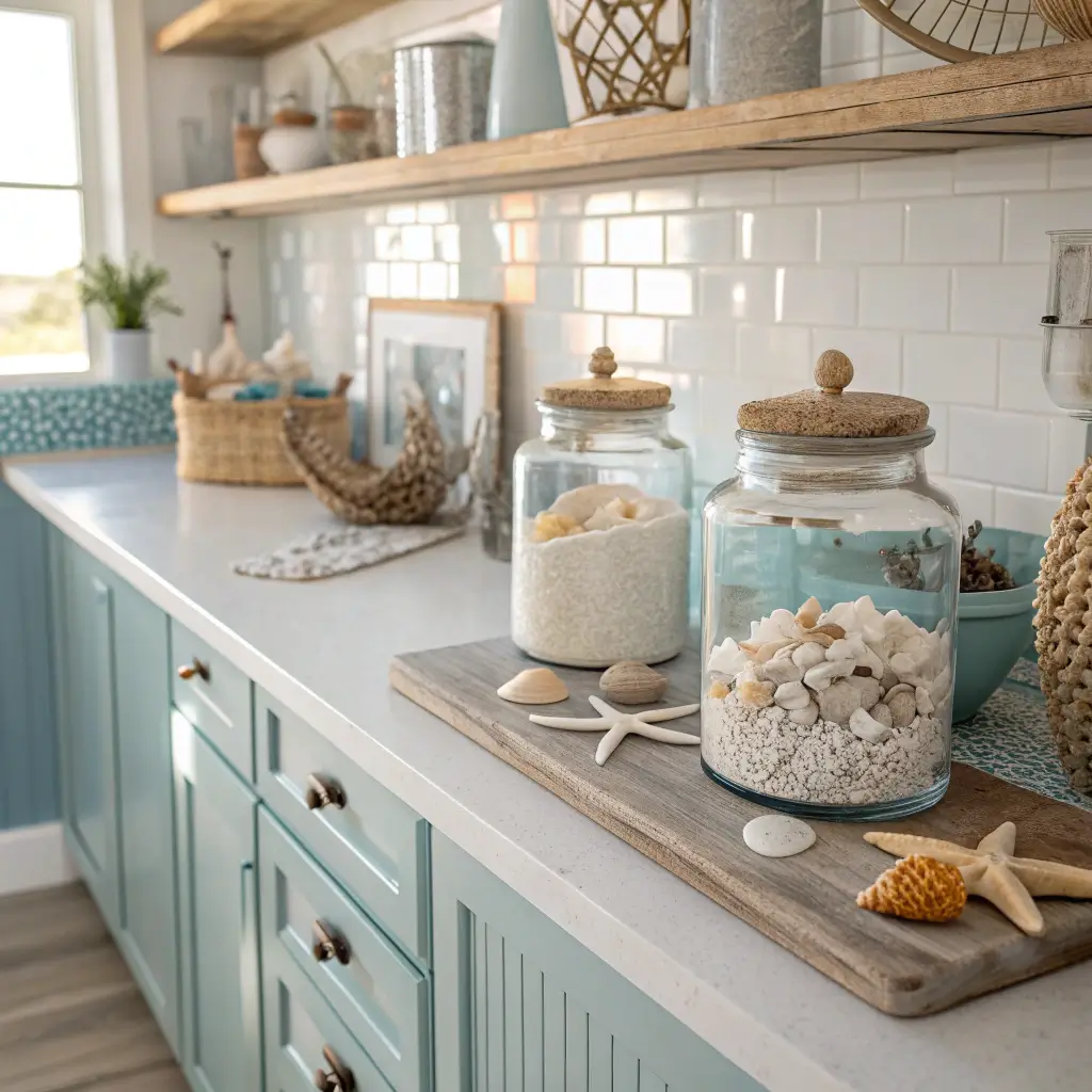 Bring beach vibes to your kitchen with coastal-inspired counter decor. You don’t need to live by the ocean to capture that relaxed, vacation feeling. I live nowhere near water but my kitchen still channels major beach house energy.