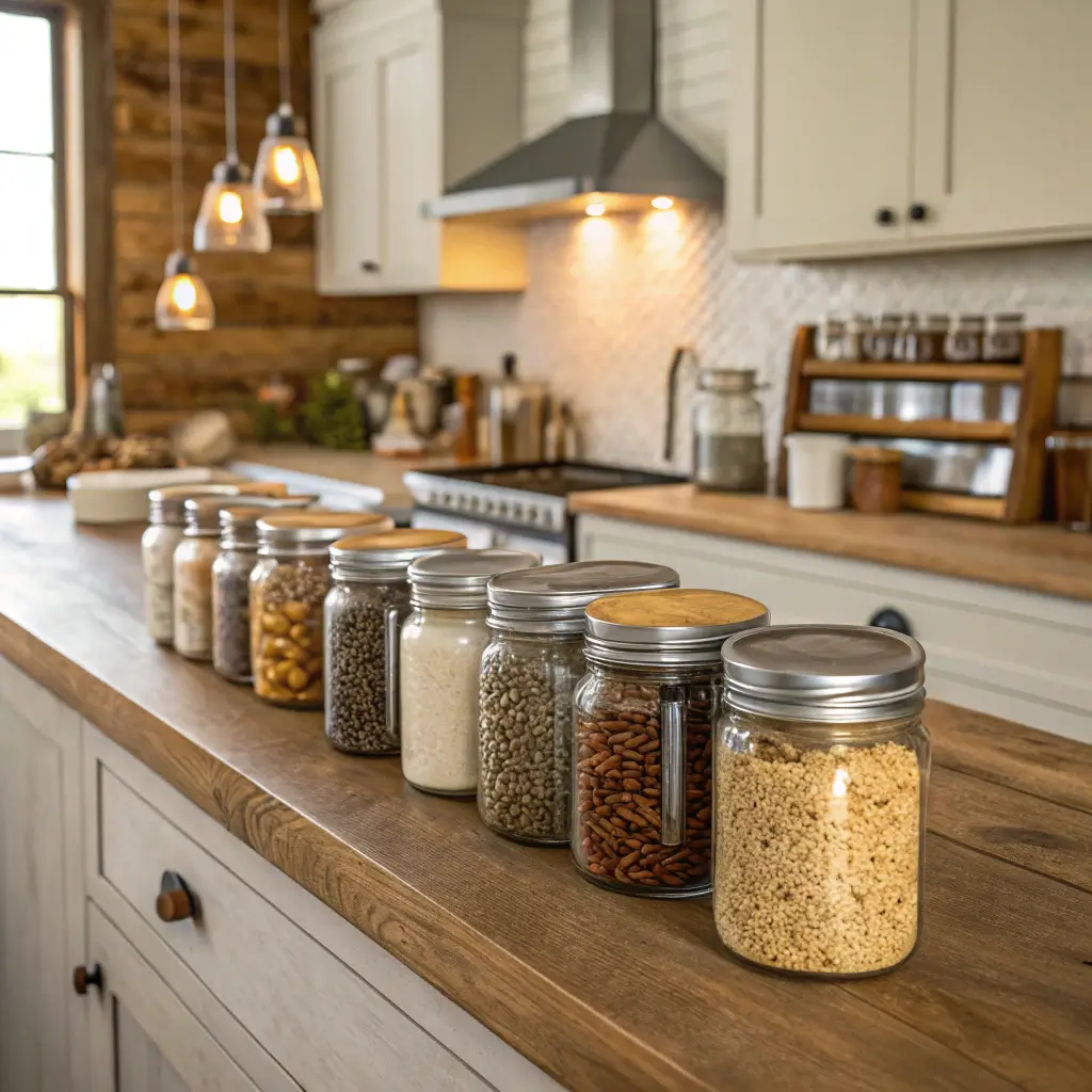 Mason jars had their moment, sure, but they’re still incredibly practical for kitchen storage. I use them for everything from utensils to homemade granola, and they look intentionally rustic rather than accidentally cluttered.