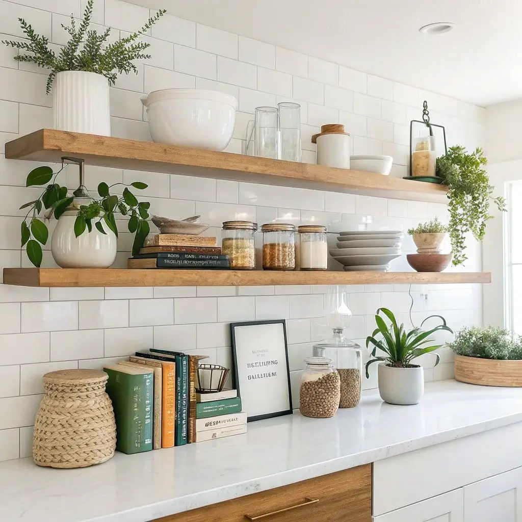 Floating shelves above your counter double your display space without eating into work areas. I installed two small shelves last year, and suddenly had room for all those pretty dishes I never used.