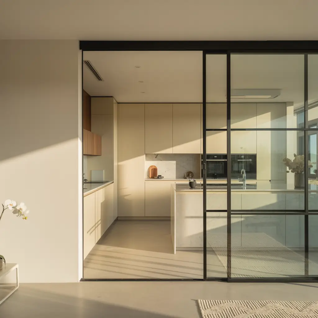 Glass sliding partitions are basically the Swiss Army knife of kitchen dividers. They give you privacy when you need it and openness when you don’t – kind of like having your cake and eating it too, except without the calories.
