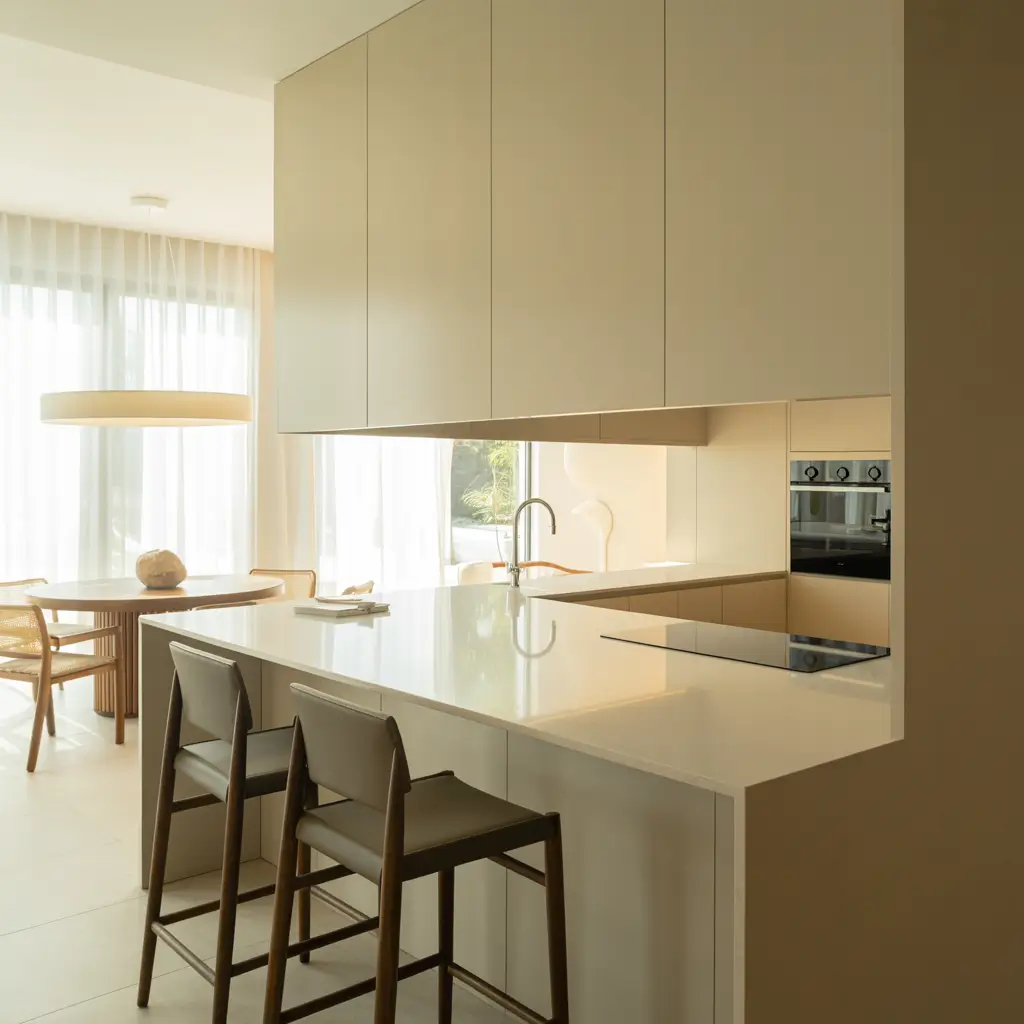 This design works especially well if you’ve got kids. You can keep an eye on homework happening at the counter while you’re prepping dinner – multitasking at its finest. I’ve also seen people use the counter as a coffee station, which is basically genius-level kitchen planning.