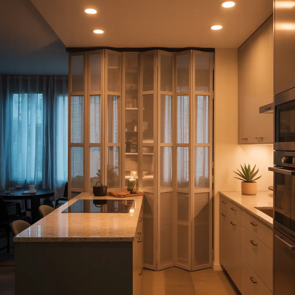 Accordion dividers are basically the transformers of kitchen partitions – they fold away completely when you don’t need them and expand to create full separation when you do. Perfect for those times when you’re hosting and want an open flow, but also for when you’re deep-frying something and don’t want the whole house to smell like a restaurant kitchen.