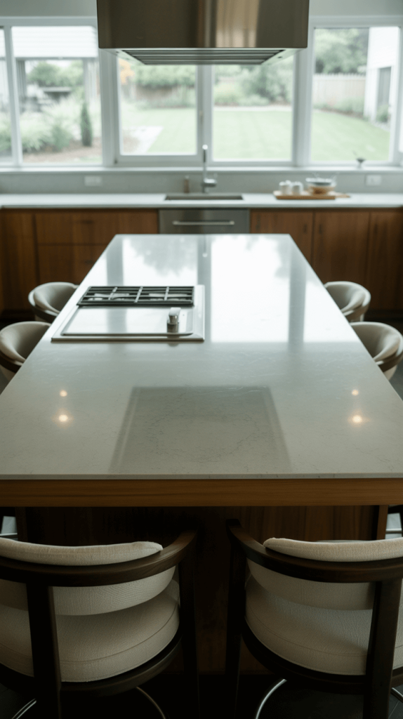 - Material Flexibility: This look works beautifully with materials that can be sculpted, like quartz, or even with a custom wood build.