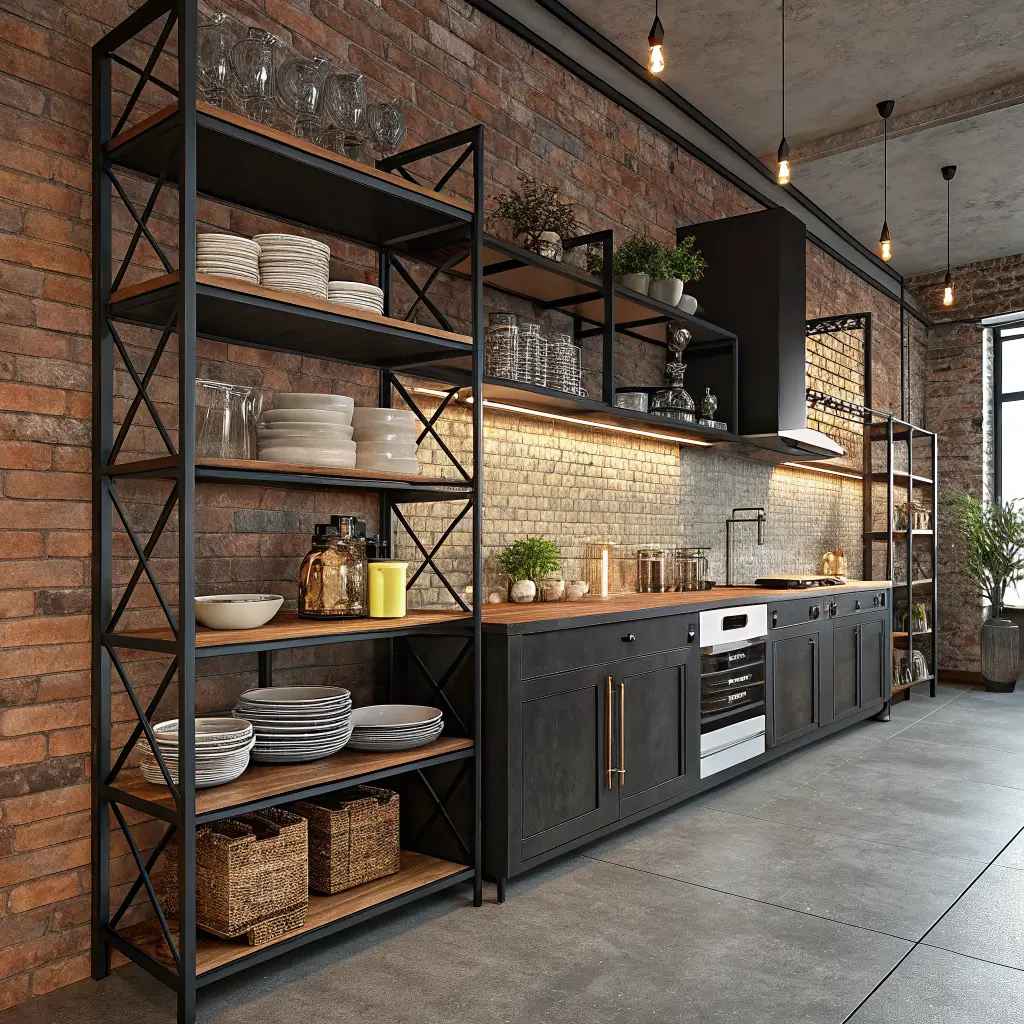 Now we’re talking industrial chic! Open metal frame shelves bring that restaurant kitchen vibe home, and let me tell you, they’re tougher than they look. My neighbor installed these last year, and I’m still jealous every time I walk into her kitchen.