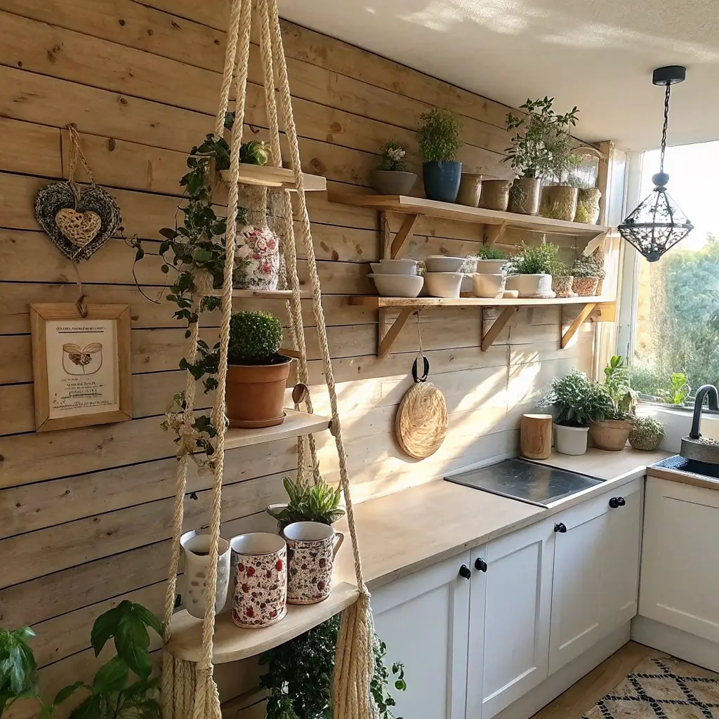 Okay, hanging rope shelves might sound like something from a beach house, but they work surprisingly well in regular kitchens too. I installed a set near my breakfast nook, and they add just the right amount of casual cool to the space.
