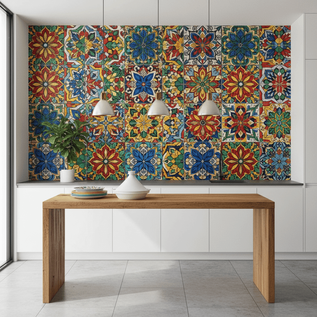Ready to go big or go home? Bold patterned tiles turn your splashback into the main character of your kitchen story. We’re talking Moroccan patterns, Spanish designs, and prints that make people stop mid-conversation.