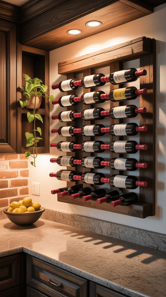 A quick safety note: If you’re storing wine you plan to drink within a few weeks, a wall rack is perfect. If you’re investing in bottles you want to age for years, you’ll need to store them on their side in a dark, cool, and vibration-free place—a sunny kitchen wall is not it. So this is best for your “ready to drink” collection 🙂