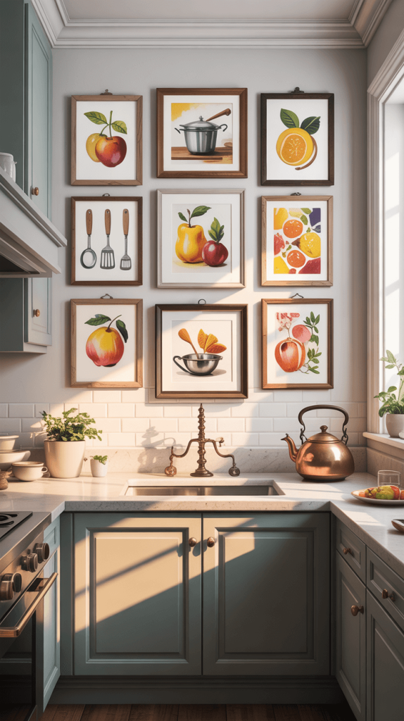 6. Create a Gallery Wall with Kitchen-Themed Art