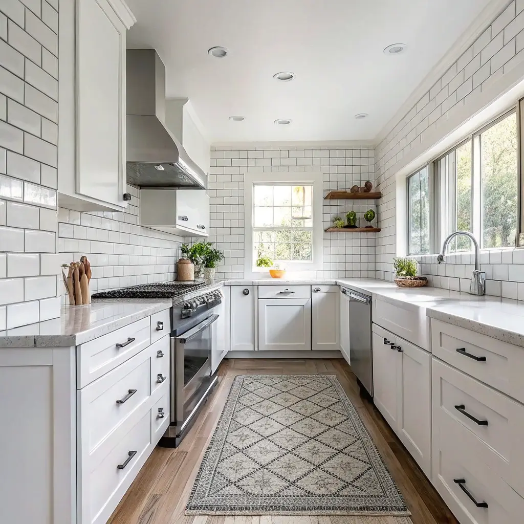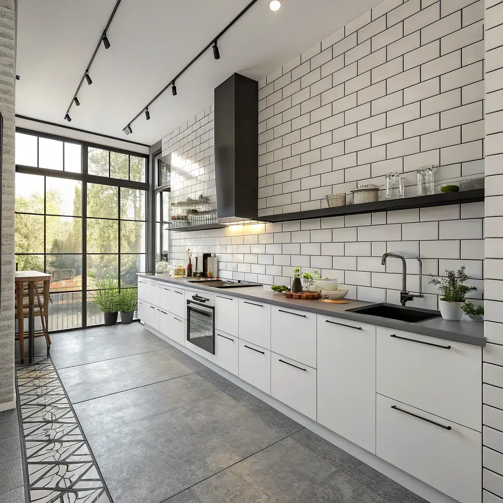 Real brick is a pain to install and maintain in a kitchen. Brick-style tiles give you all the charm with none of the hassle. Make sure you stagger the joints properly – nothing ruins the illusion faster than tiles that don’t line up like actual bricks would.