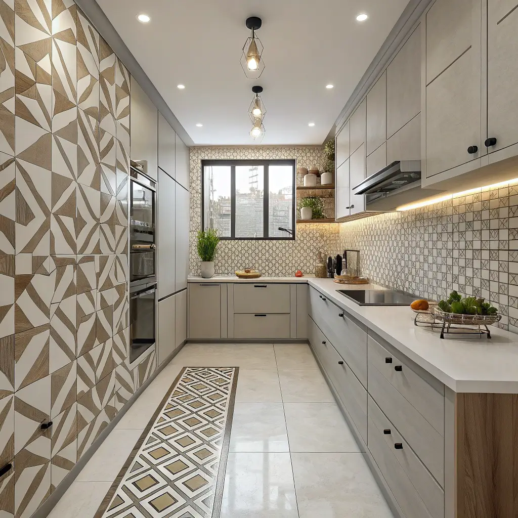 Here’s where people mess up with geometric tiles: they go overboard. You don’t need all four walls covered in triangles to make a statement. Pick one focal wall – usually behind your stove or sink – and let it shine. The rest of your walls can chill with simple, complementary tiles or paint.