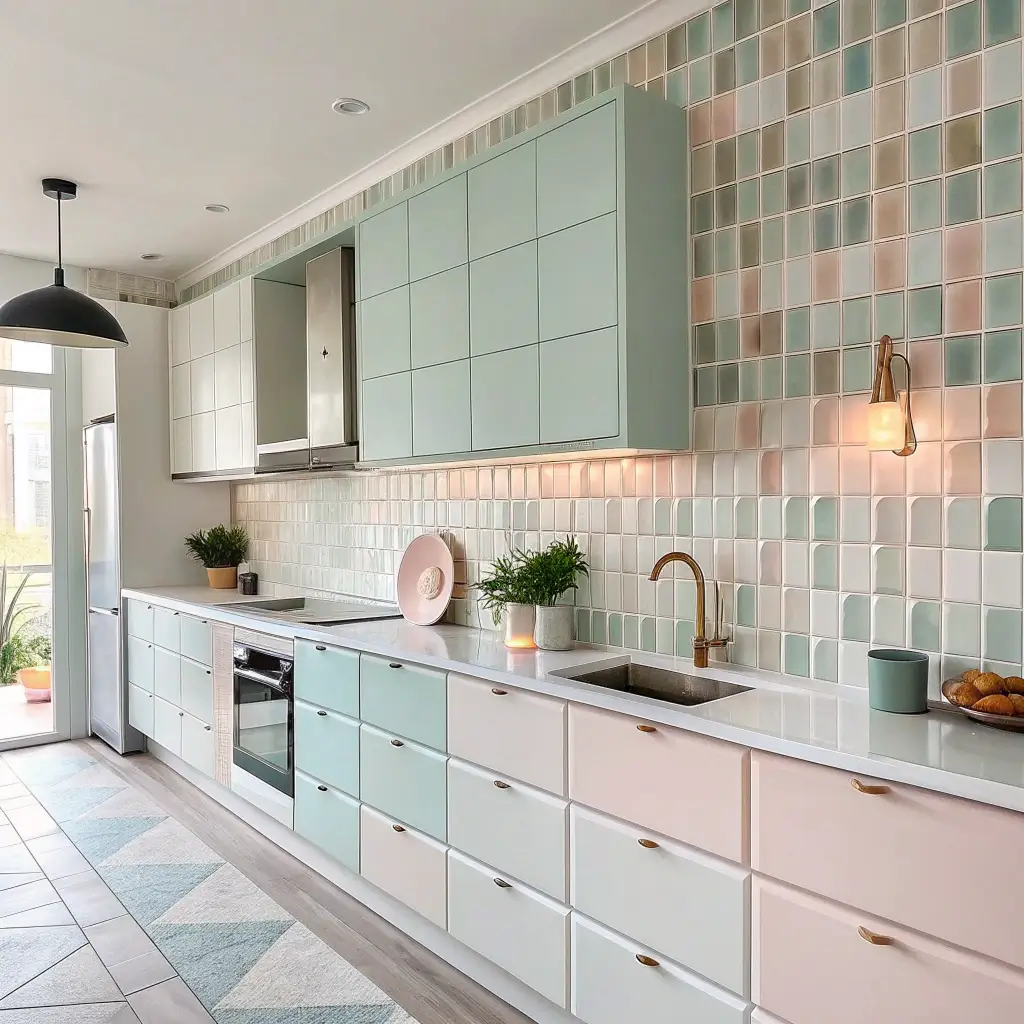 Who says kitchens have to be all whites and grays? Soft pastel tiles are making a huge comeback, and I’m here for it. We’re talking dusty pinks, sage greens, and powder blues that add personality without screaming for attention.