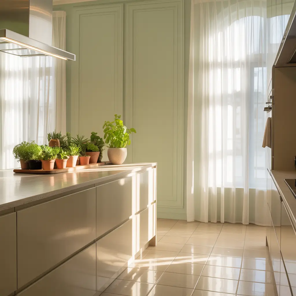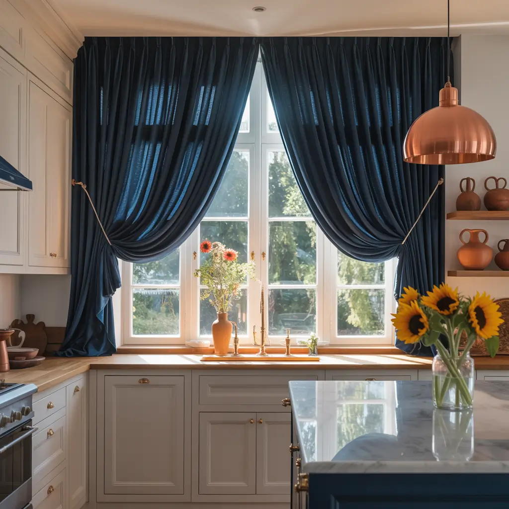 Sheer panels offer the perfect compromise between privacy and natural light. They soften harsh sunlight without plunging your kitchen into darkness. Plus, they create this dreamy, ethereal quality that makes morning coffee feel extra special.