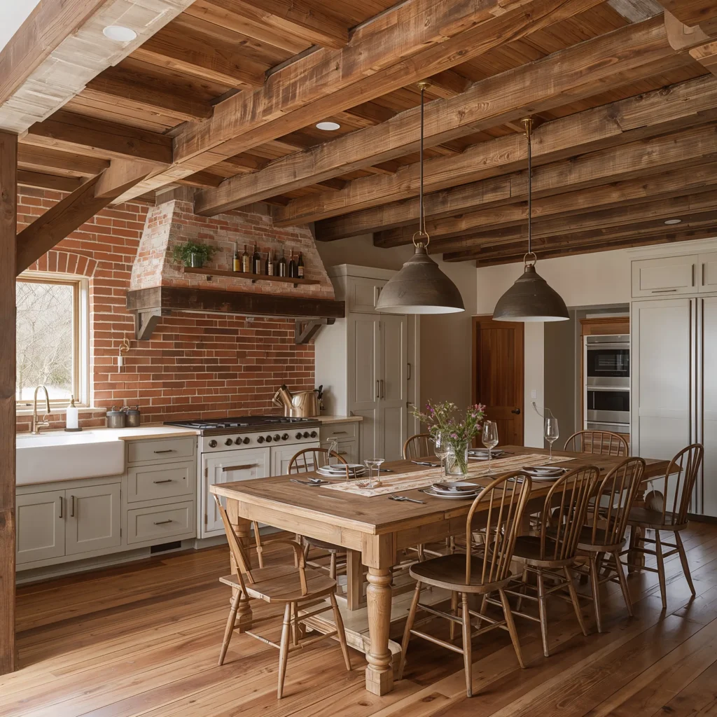 Now we’re talking about my personal favorite—probably because I grew up visiting my grandma’s farmhouse every summer. The rustic farmhouse style brings warmth and character that modern designs sometimes miss. It’s like wrapping your entire kitchen-dining combo in a cozy blanket.