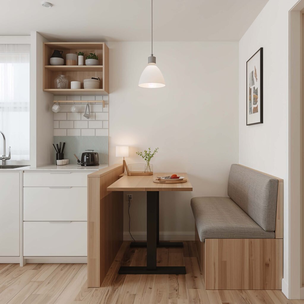 Last but definitely not least—the sliding dining bench solution that makes compact kitchens feel twice their size. I discovered this trick while designing for a tiny house enthusiast, and now I recommend it constantly.