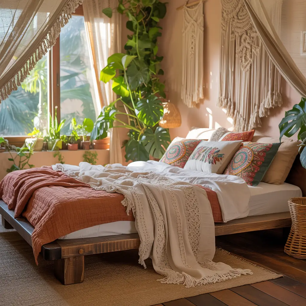 The key to nailing boho style? Restraint (I know, ironic for a style known for maximalism). Add macrame as accent pieces—maybe a valance or tiebacks—rather than covering every surface.