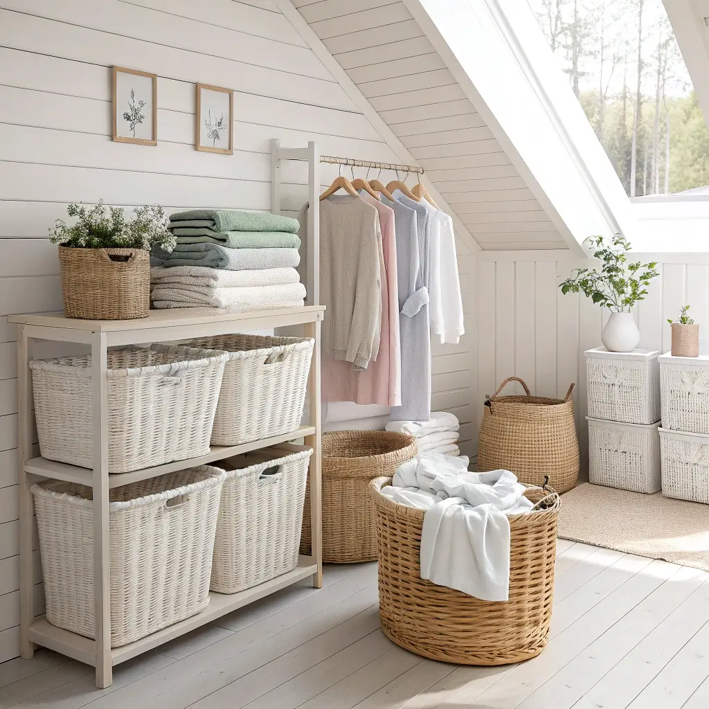 The trick is choosing bins that complement your space. I went with natural woven baskets because they hide the chaos inside while looking decorative. My friend chose sleek white plastic bins with gray labels for her modern laundry room. Both work because we committed to the aesthetic.