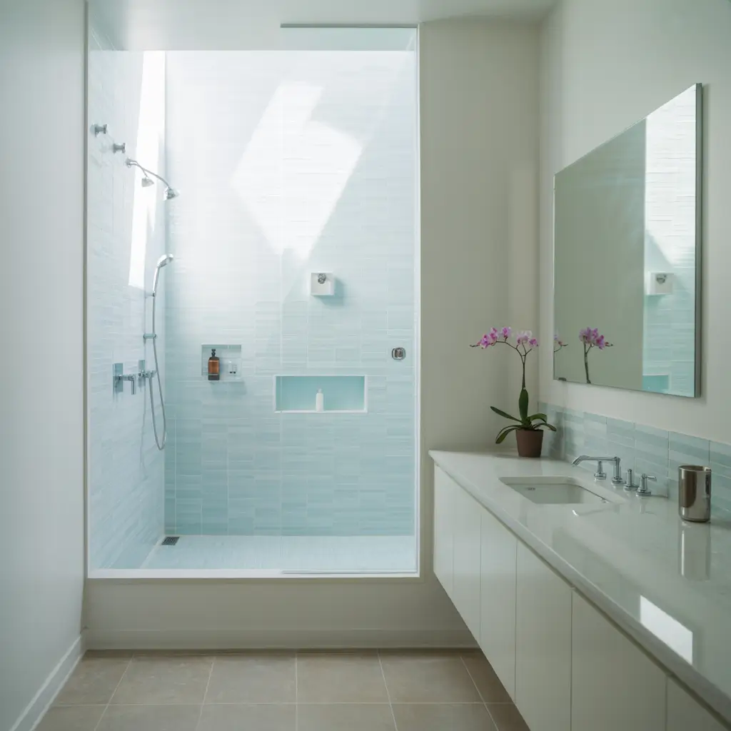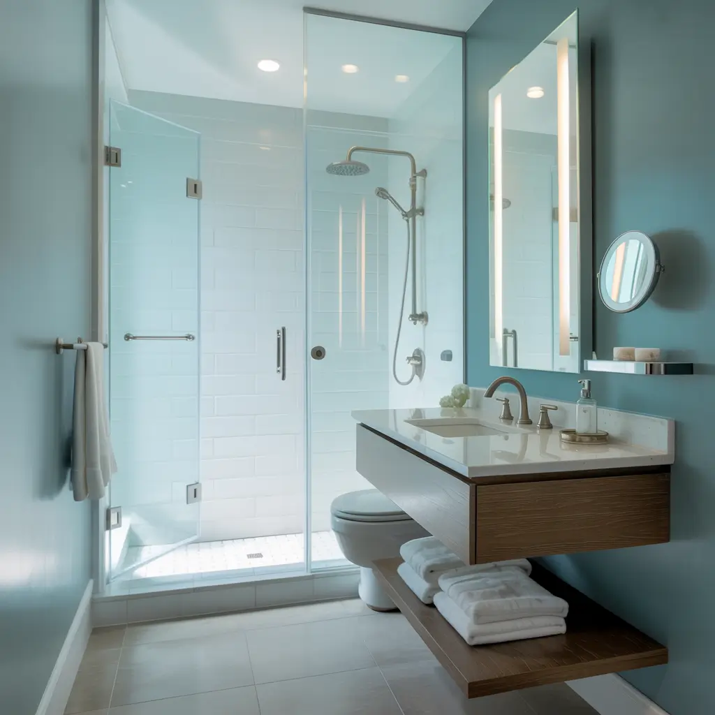 - Frameless glass shower doors (they disappear visually)