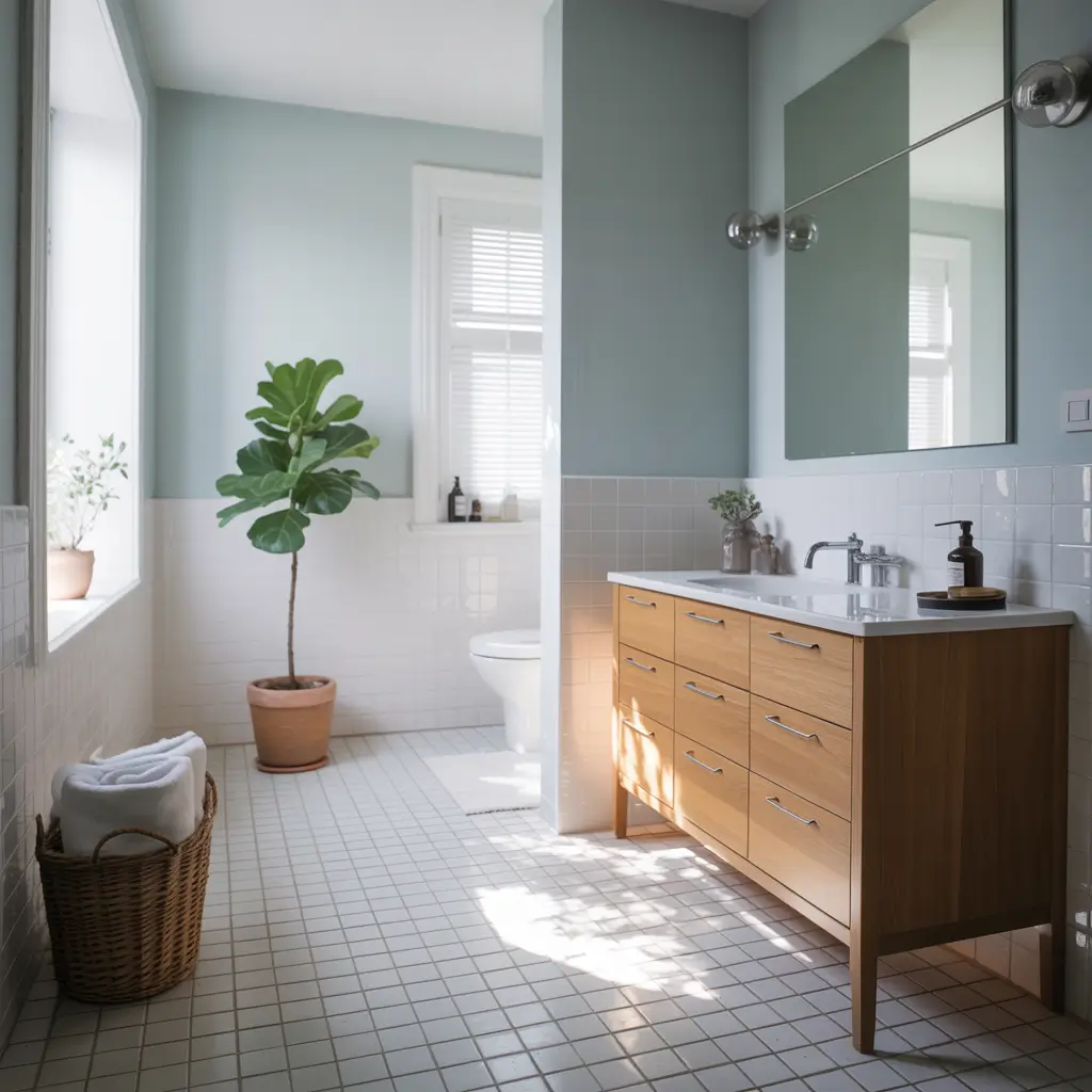 Small bathroom? No problem. Light blue actually makes tight spaces feel larger – it’s basically an optical illusion that works in your favor. My first apartment had a bathroom the size of a closet, and light blue walls made it feel twice as big.