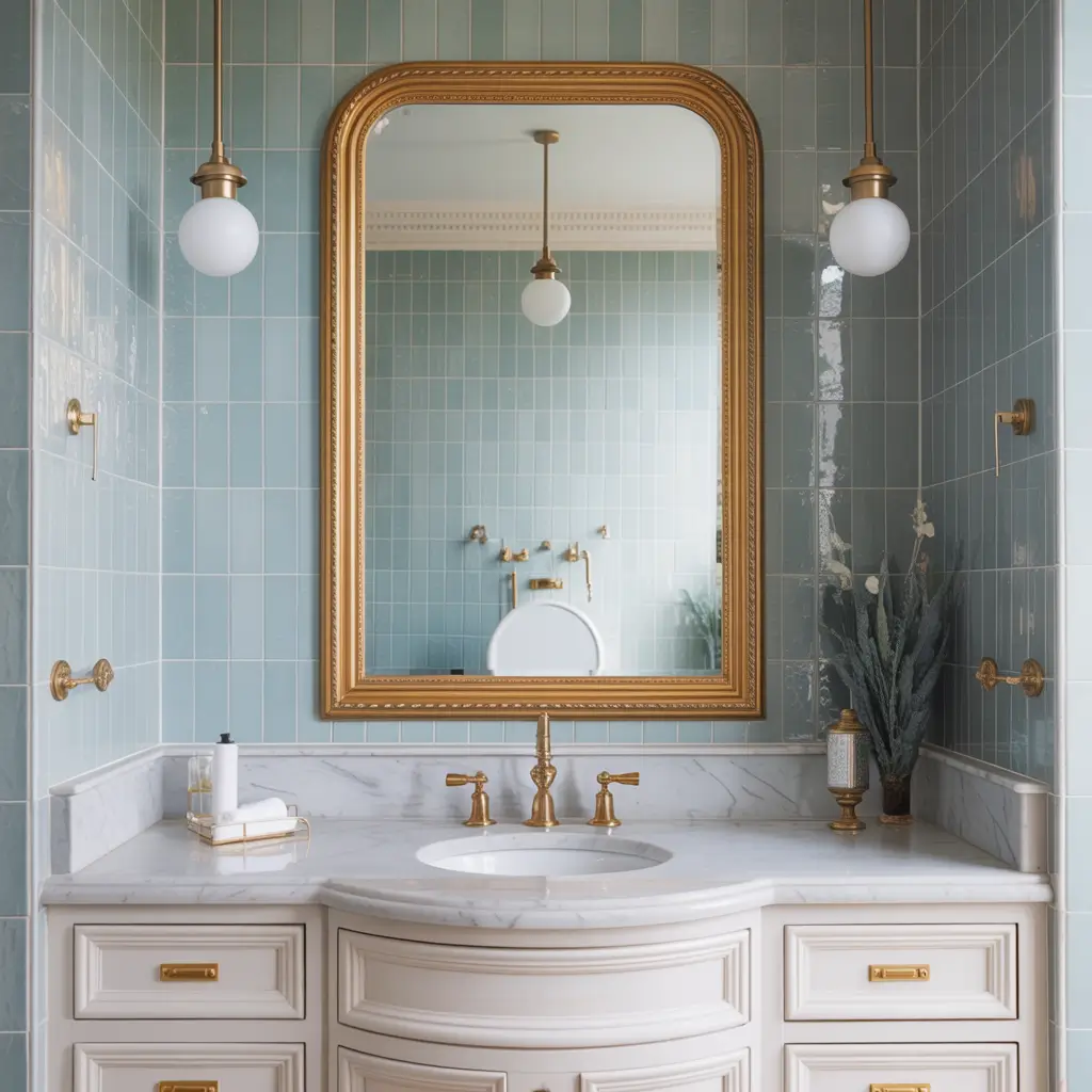 Remember when everyone said gold fixtures were tacky? Well, they were wrong. Light blue with gold hardware creates this elevated, luxurious feel that makes your bathroom look way more expensive than it actually is.