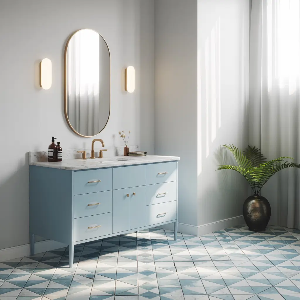 Who says light blue has to be boring? Patterned tiles in blue tones add personality without overwhelming the space. Whether it’s geometric, floral, or abstract, patterns bring energy to your bathroom design.