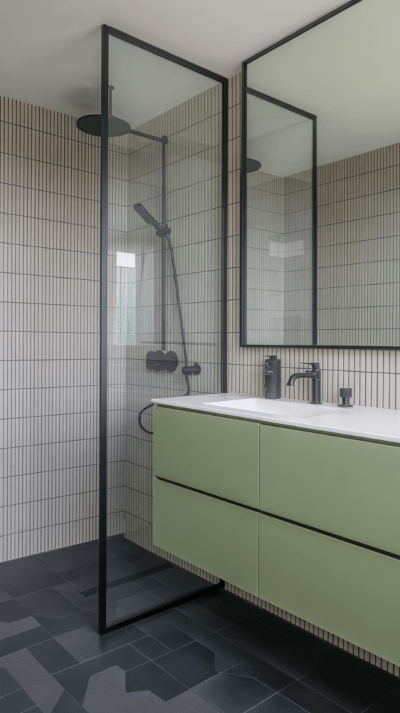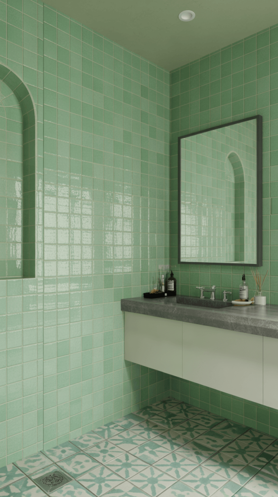 - Think Geometric: Pair your light green walls with geometric floor tiles—maybe large-format hexagons in a charcoal gray. The clean lines of the tiles play beautifully against the softness of the color.