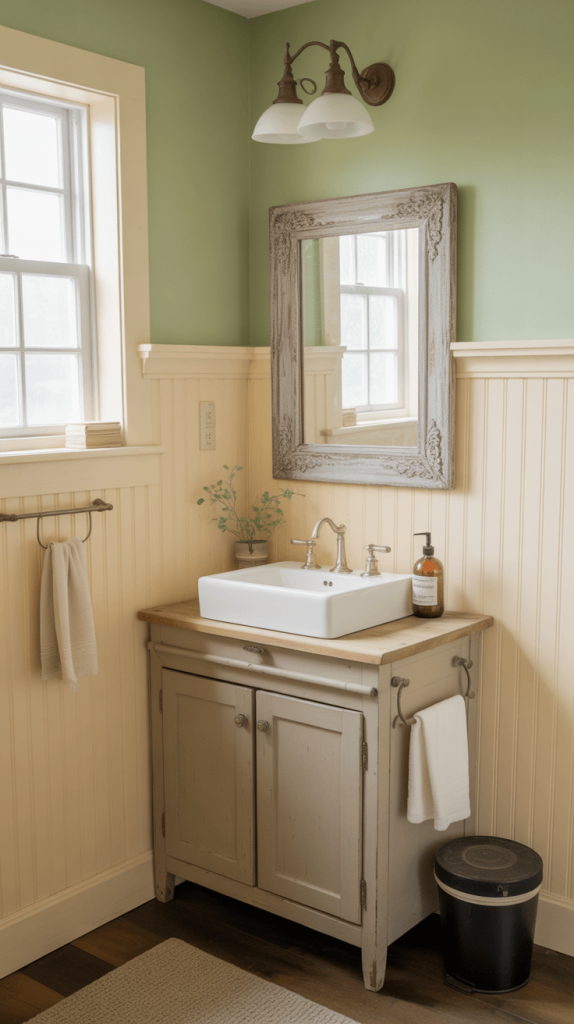 - Thrift and Upcycle: That dated wooden vanity? Don’t replace it—sand it down and paint it that beautiful sage green you’ve been eyeing. A gallon of good paint is cheaper than a new piece of furniture.