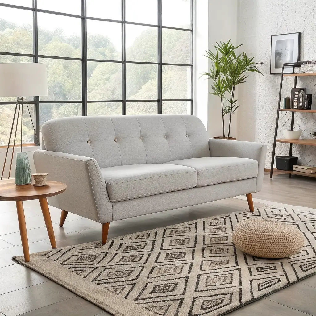 Size matters more than you think with rugs. Your rug should be large enough that at least the front legs of your sofa sit on it. This anchors the seating area and makes the room feel cohesive rather than disconnected.
