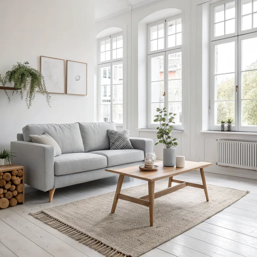 Scandinavian Minimalist Light Grey Couch Living Room