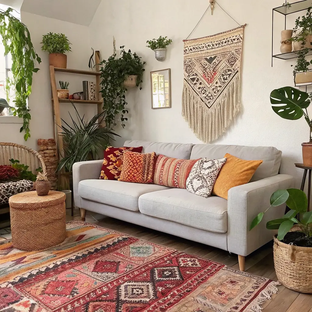 Boho Inspired Grey Sofa Living Room