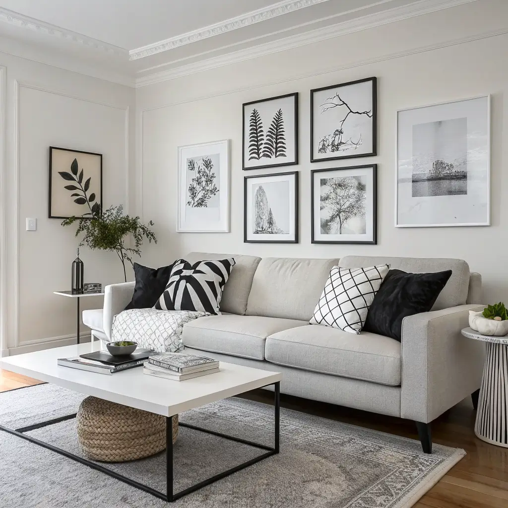 Start with your light grey couch, then add charcoal pillows, a medium grey rug, maybe some silver metallic accents. The variation in shades prevents that flat, boring look that gives monochrome a bad name.