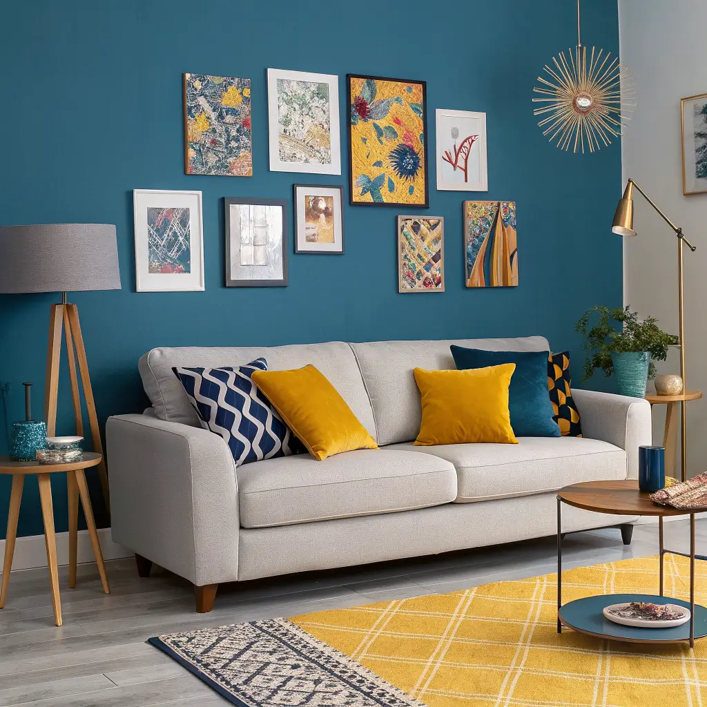 Pick ONE bold color and commit to it. Navy blue creates sophistication, emerald green adds richness, hot pink brings energy, and burnt orange delivers warmth. Use your chosen color in three places minimum: pillows, artwork, and one larger piece like a rug or accent chair.