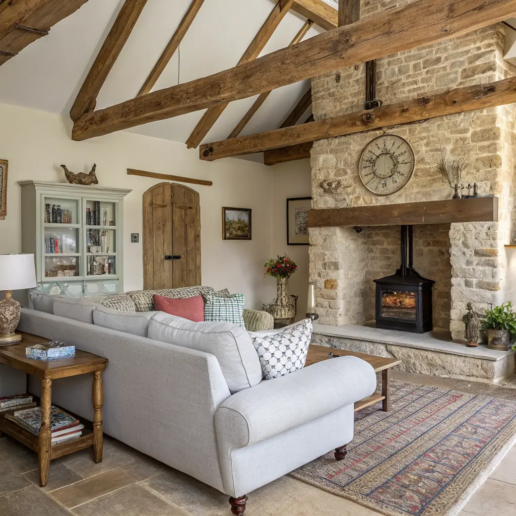 Mixing modern grey upholstery with rustic elements? Genius move. The contrast between sleek grey fabric and weathered wood creates visual magic that feels both current and timeless.