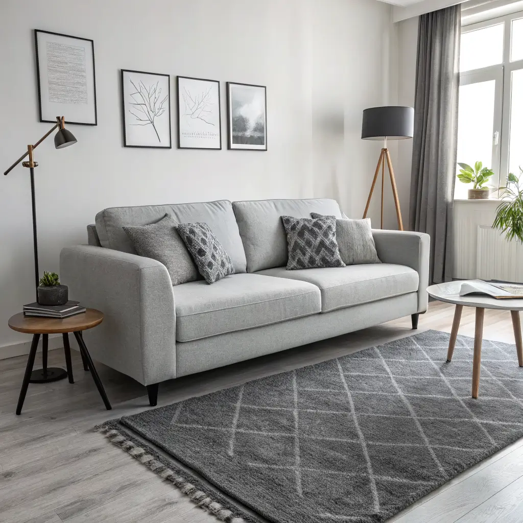 Start by pairing your grey sofa with a chunky knit throw in cream or soft white. Add one or two linen pillows in natural tones, and you’ve instantly created visual interest without cluttering the space. The beauty of minimalism with a grey sofa? You don’t need much to make a statement.