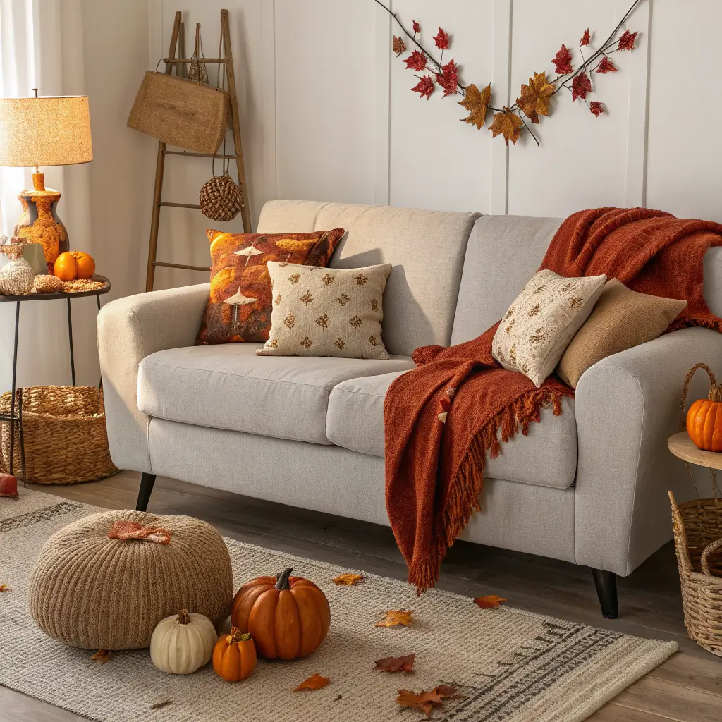 I keep seasonal decor boxes labeled and ready to swap. Takes me thirty minutes to completely transform my living room’s vibe. The grey sofa stays constant while everything around it shifts with the calendar.