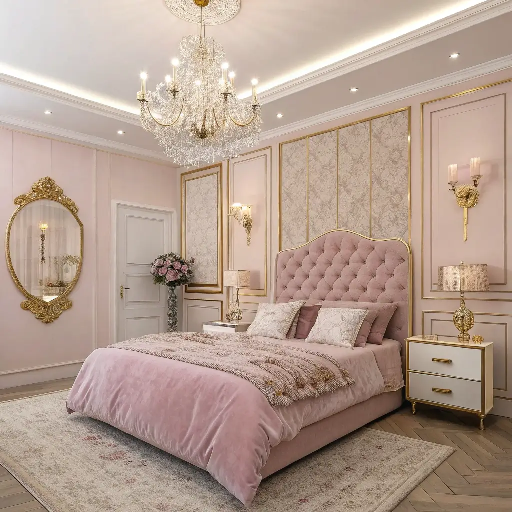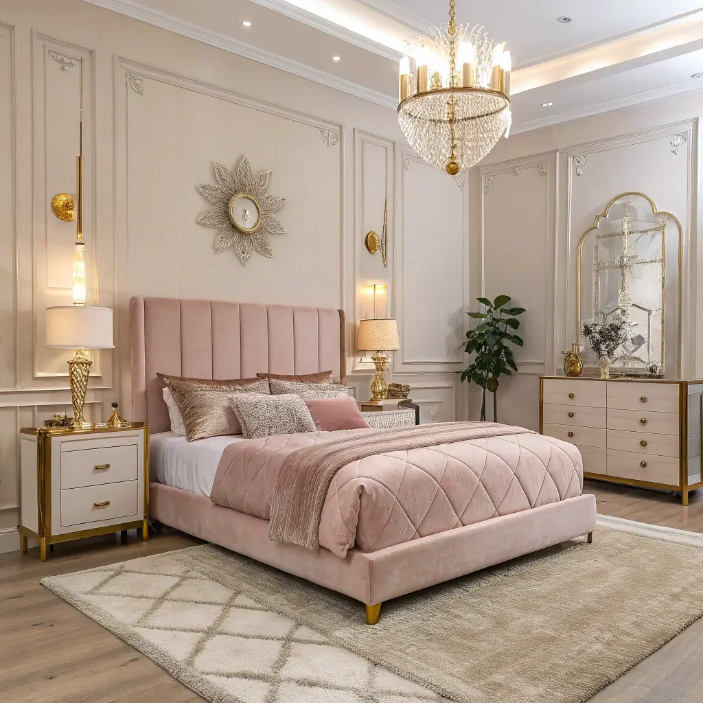 Elegant Light Pink and Gold Bedroom
