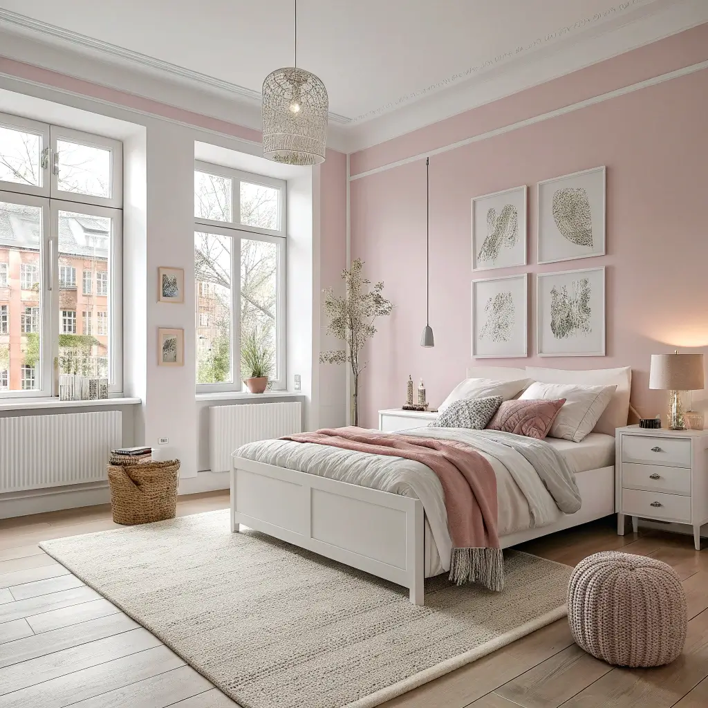 Light Pink Scandinavian Style Bedroom