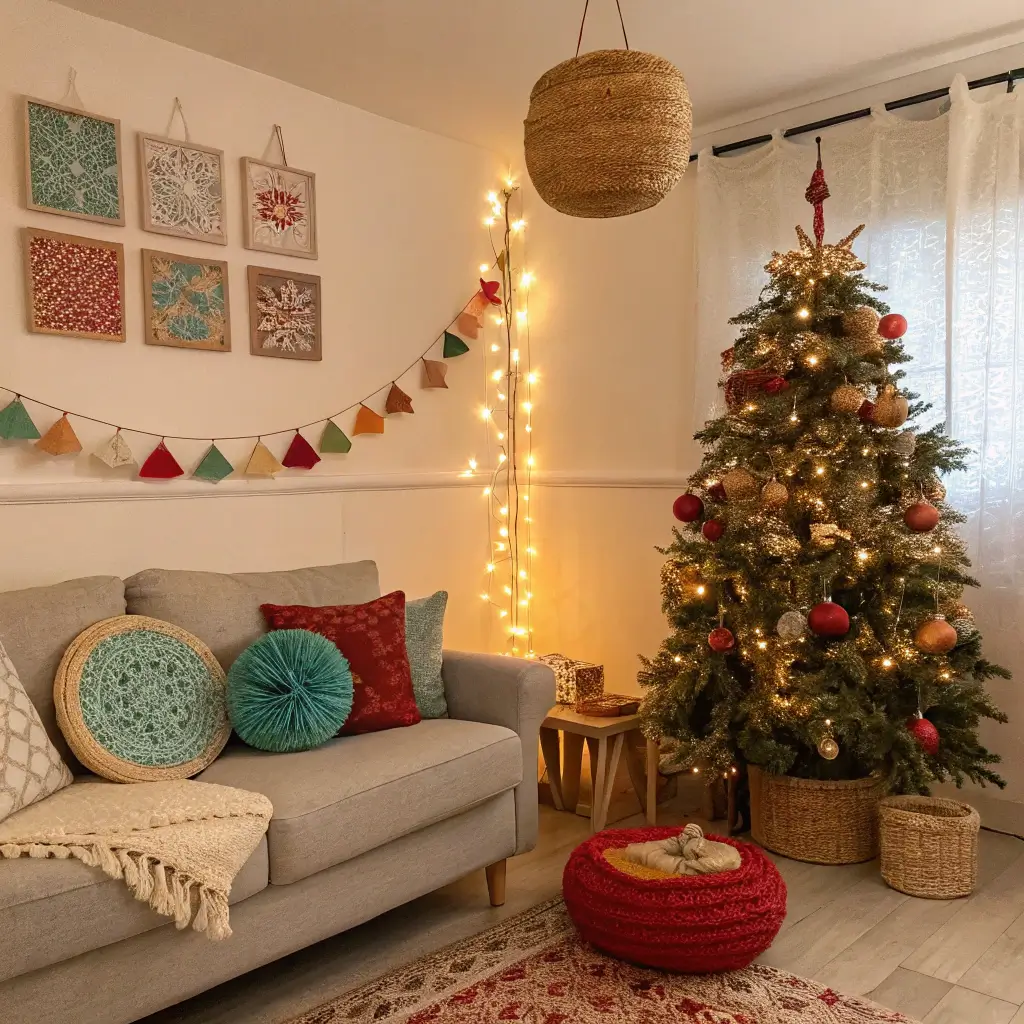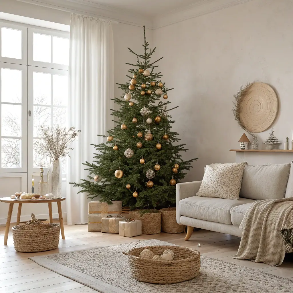 Wood, wool, and linen dominate this aesthetic. Your Christmas tree might even stay partially bare, showing off its natural branches. Sounds weird? It looks surprisingly elegant.