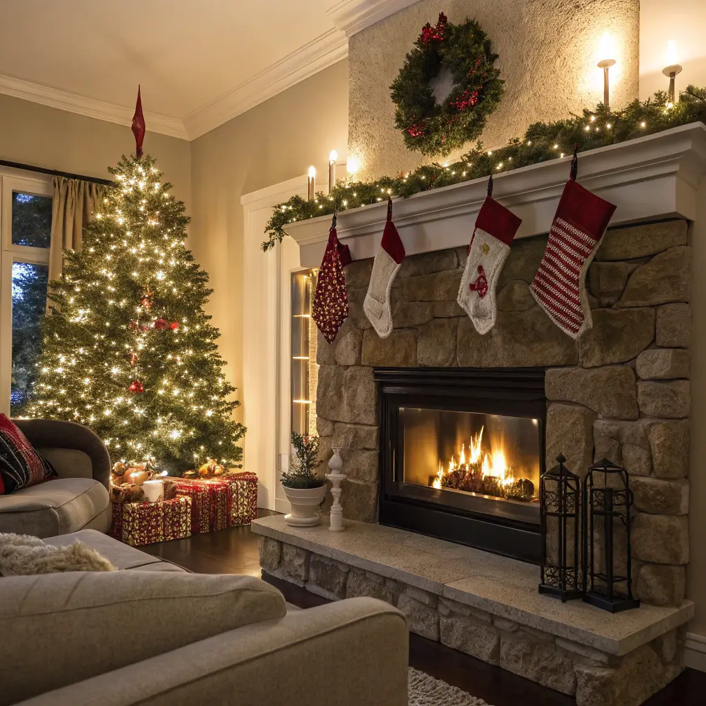 Don’t forget the poinsettias! Real or high-quality silk ones flanking your fireplace complete the traditional vibe perfectly.