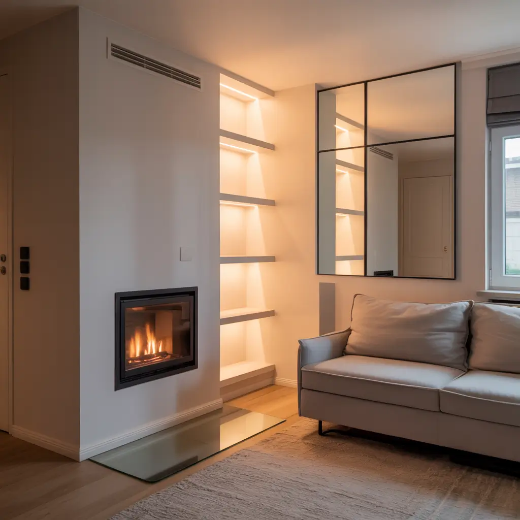 Mirrors are your best friend in small spaces with fireplaces. A well-placed mirror can double the visual impact of your fireplace while making the room feel larger. Just make sure it’s positioned to reflect something attractive – not your pile of mail on the side table 🙂