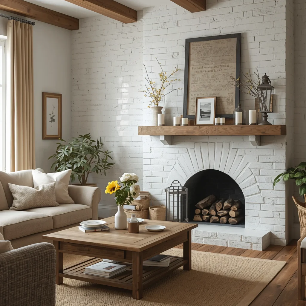 White brick fireplaces are the perfect canvas for farmhouse styling because they give you that rustic texture while keeping things bright and fresh. It’s like getting the best of both worlds – character and cleanliness.