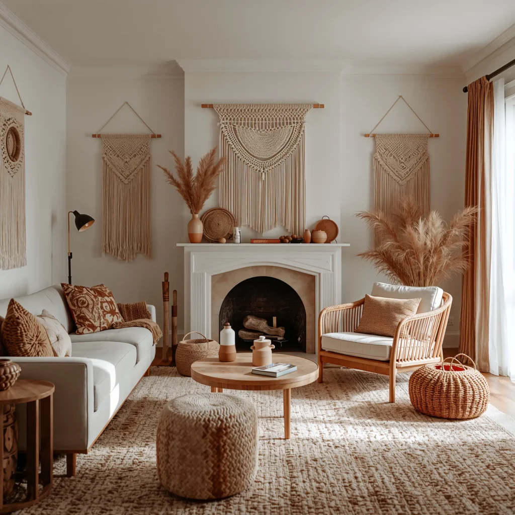 Don’t forget about lighting in boho spaces. String lights, lanterns, and candles create that warm, magical ambiance that makes boho style so appealing. Just be mindful of fire safety around your actual fireplace!