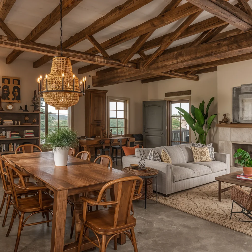 Modern Rustic Living Room with Dining Area