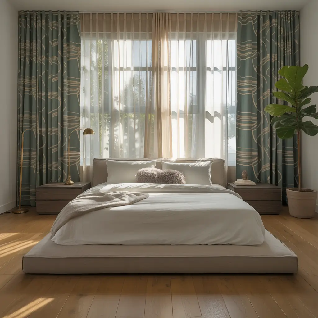FYI, layered curtains also provide excellent temperature control. The air pocket between layers acts as insulation, keeping your bedroom comfortable year-round.