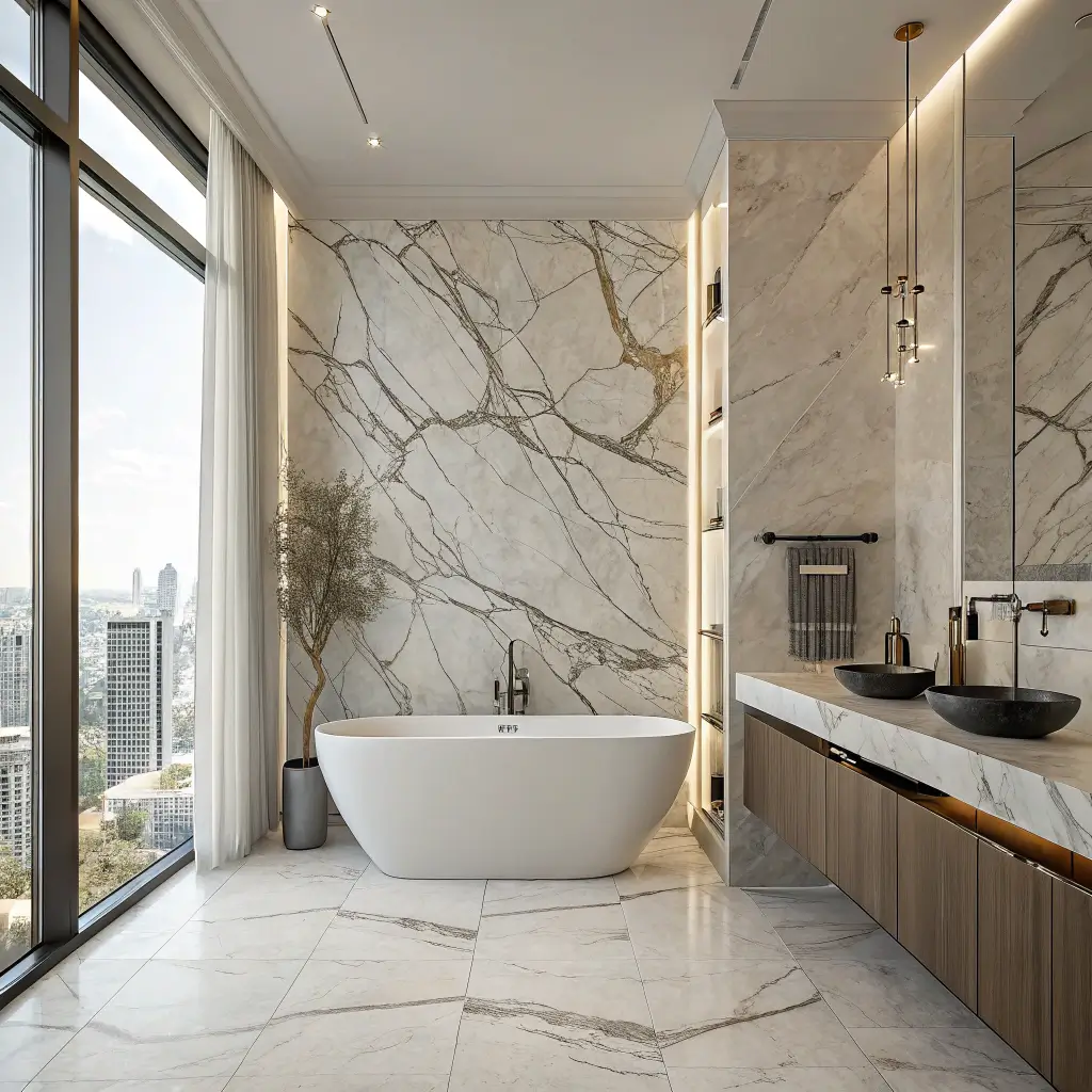 Can’t commit to full marble? Accent walls deliver maximum impact without maximum investment. One statement wall transforms the entire space.