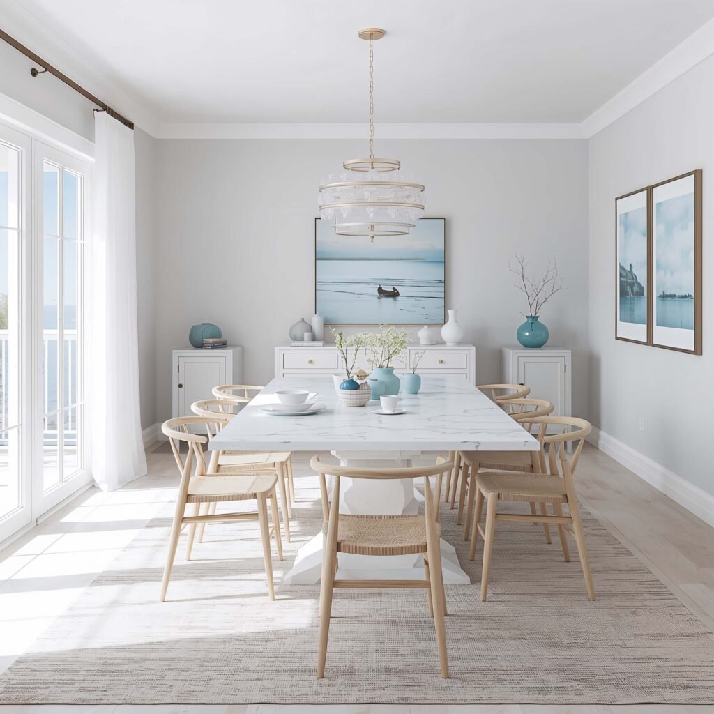 Coastal Inspired Marble Dining Area