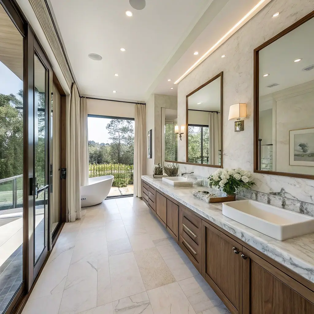 The key is choosing marble with subtle, calming patterns – nothing too busy or dramatic. Pair it with natural materials like bamboo or teak. Add soft, indirect lighting. Keep the color palette neutral and soothing. Every element should whisper “relax” not shout “look at me!”