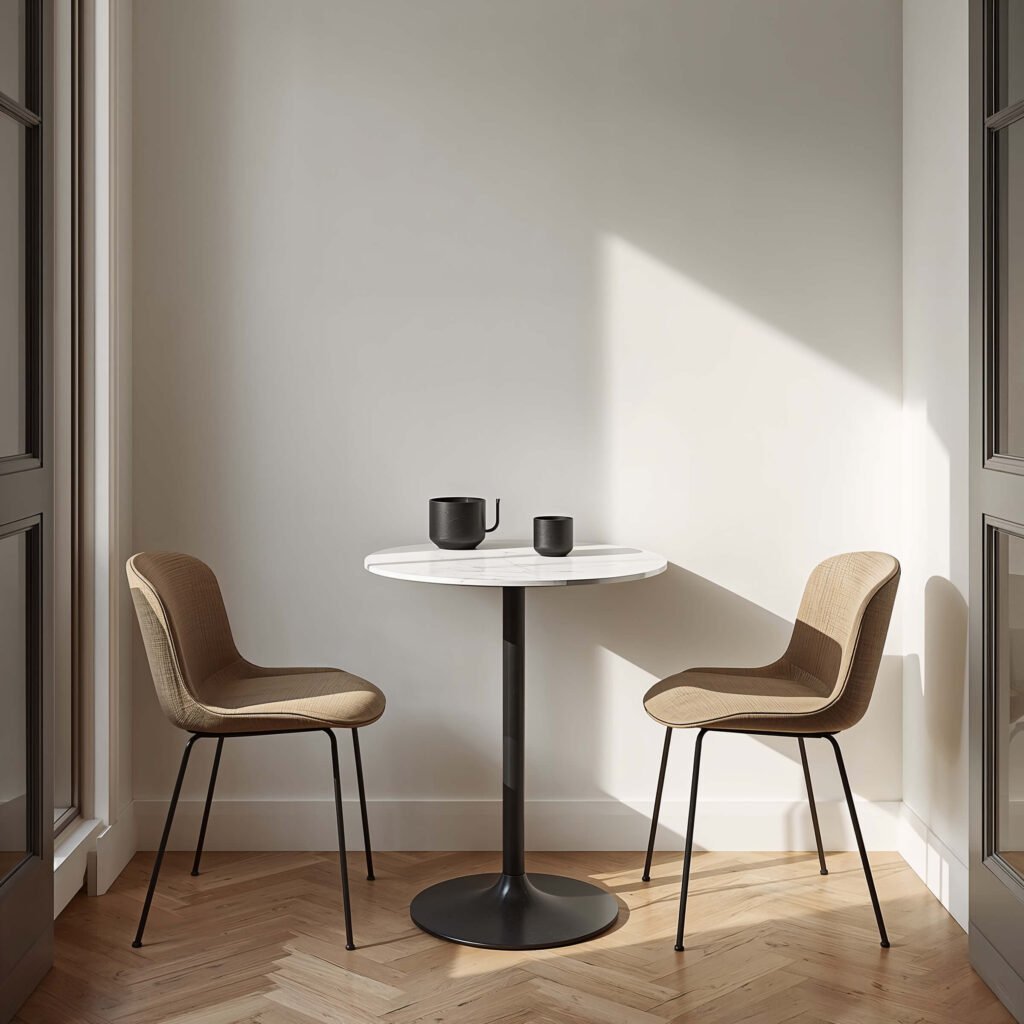 Use transparent or slim chairs to maintain visual flow. Skip the heavy upholstered dining chairs – they’ll swallow your space faster than you can say “buyer’s remorse.”