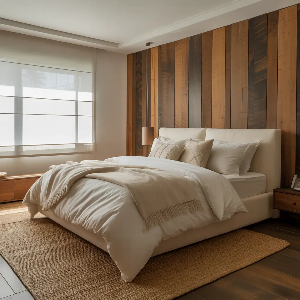 I incorporate wood furniture, stone accents, and living plants throughout my bedroom. Natural fibers like cotton, linen, and wool dominate my textiles. The combination creates an organic modern look that feels both fresh and timeless.
